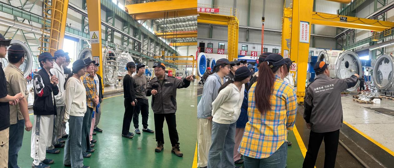 在装备制造车间,师生们近距离观摩了风机核心部件的精密加工过程。王辉宇部长以转子装配、叶片成型等关键工序为切入点,现场剖析了设备升级对生产效率的提升作用,并讲解了如何实现全流程质量监控。当看到理论课本中的流体力学原理转化为实体风机的动力结构时,员工李然感慨:“站在轰鸣的生产线旁,我才真正理解‘大国重器’背后的技术含量。”