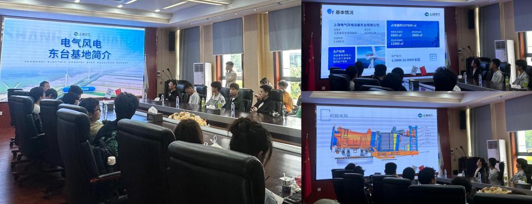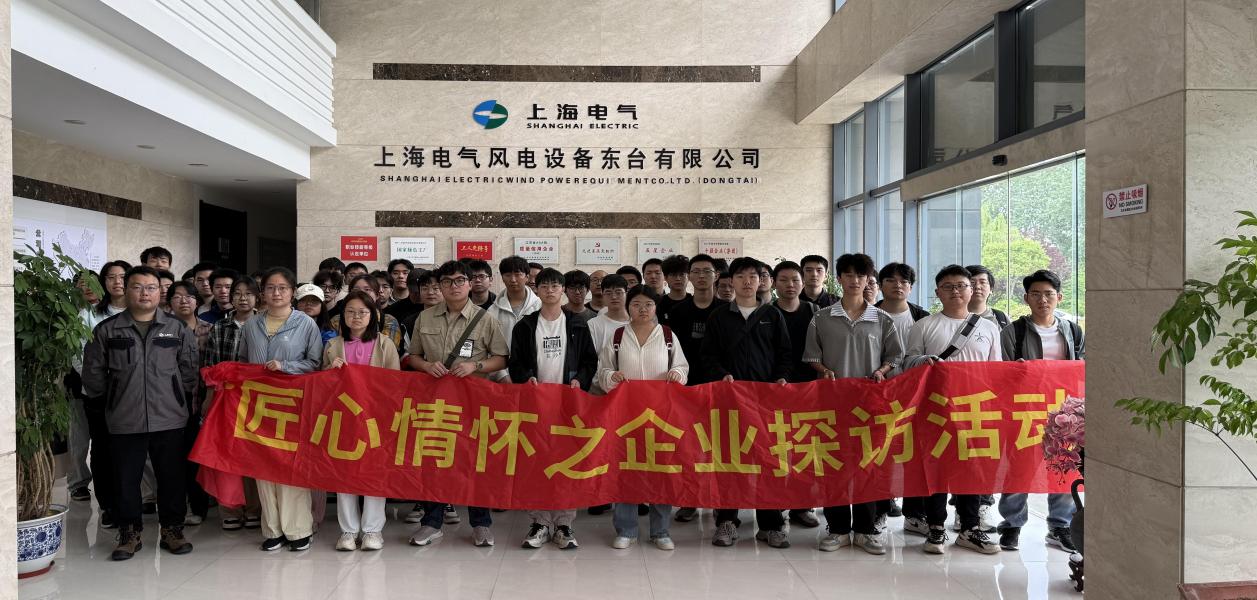 深化员工对新能源装备制造行业的认知,搭建校企协同育人平台,2025年5月16日,BETVICTOR组织师生赴上海电气风电设备东台有限公司开展“匠心情怀企业探访活动”,带50名员工近距离感受新能源高端装备制造的前沿动态。活动由公司就业工作联系人高汕带队,上海电气风电设备东台有限公司生产部部长王辉宇全程陪同讲解。