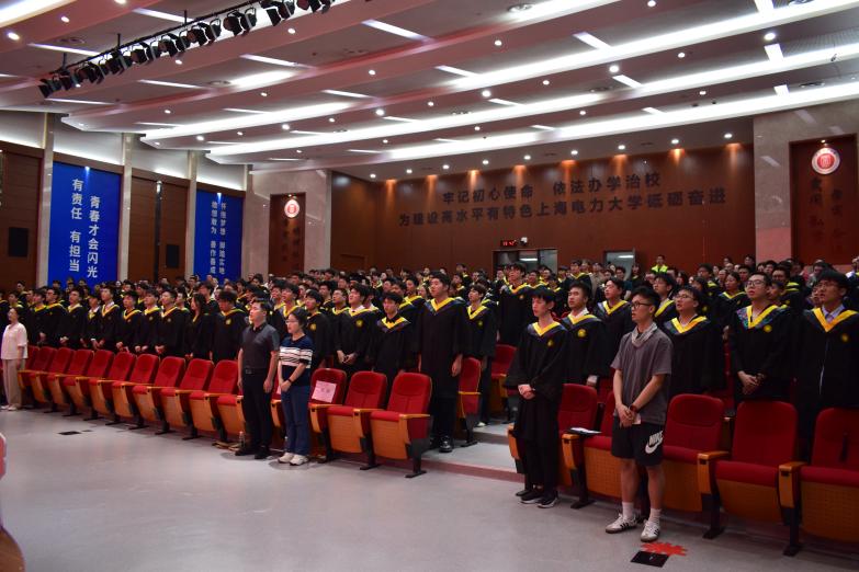 毕业典礼在庄严的国歌声中正式开幕。全体师生及家长起立,共同奏唱国歌。
