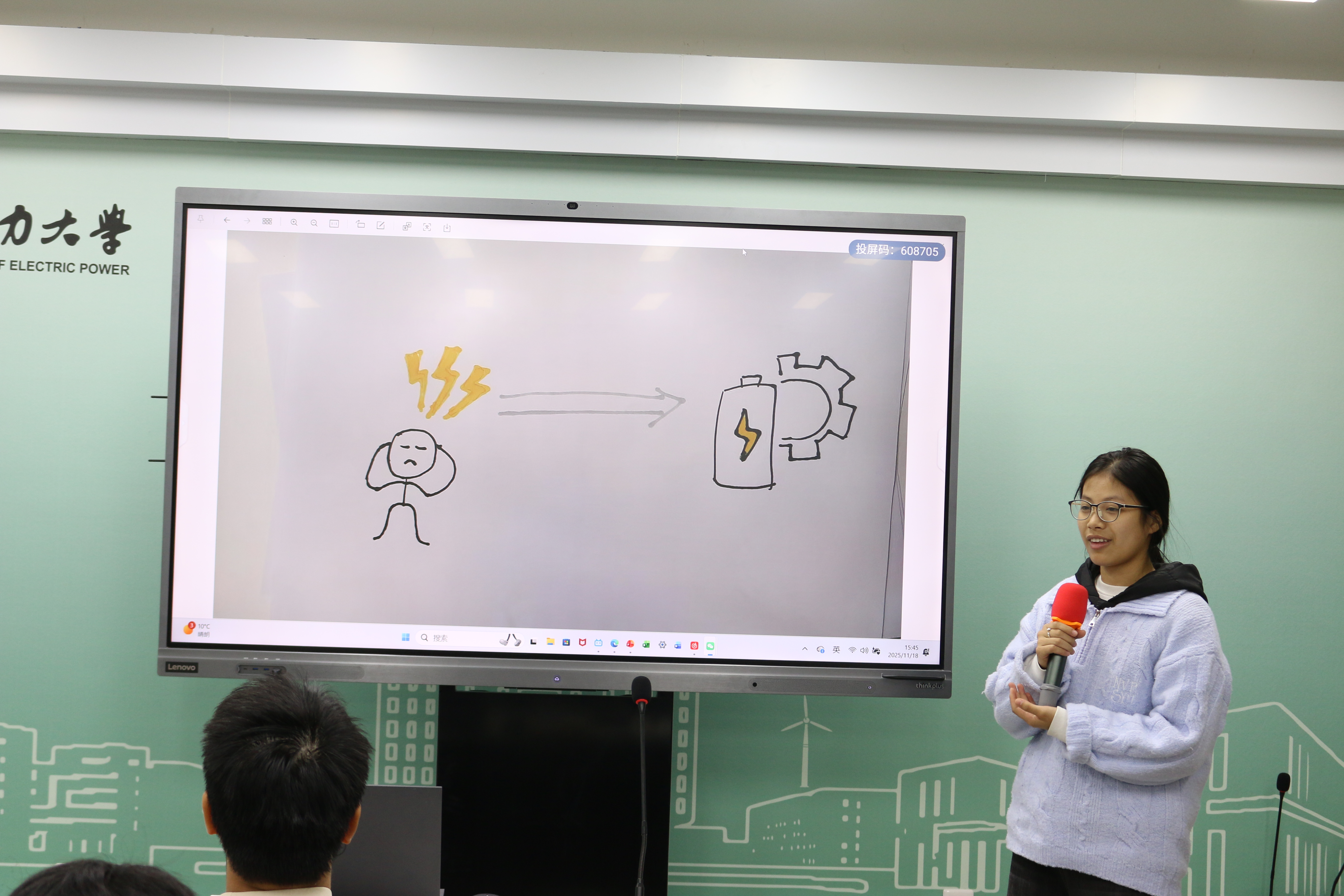 最后,各小组代表依次上台,在“能量装置发布会”上展示本组的画作,阐述设计理念与转化原理,通过将“情绪”比喻为“待转化的能源”,强调了情绪转化的无限可能性。