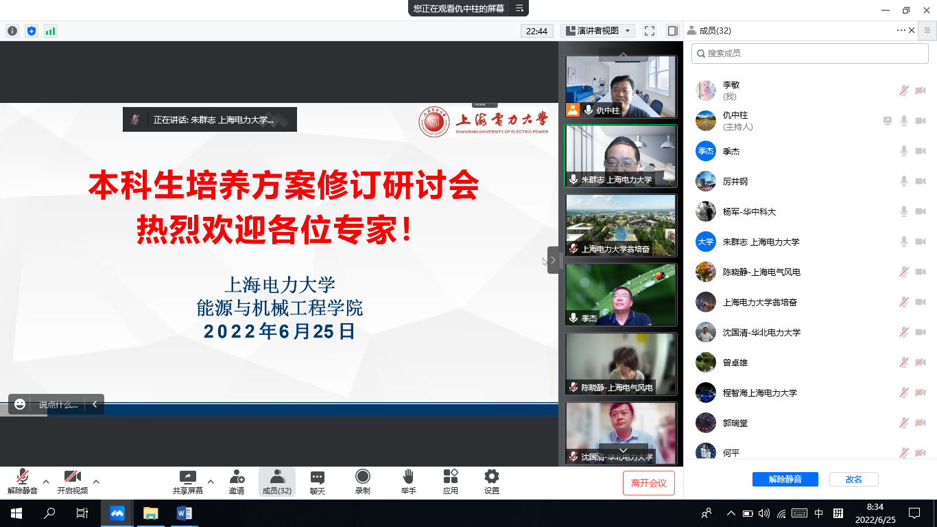 为深入推进本科人才培养方案修订工作,进一步优化专业人才培养方案,全面提高人才培养质量,2022年6月25日公司在线上召开2022版能动类专业和机械类专业六个专业人才培养方案专家研讨会。研讨会邀请到了上海交通大学孙方宏教授、中国科技大学季杰教授、华中科技大学杨军教授、华北电力大学沈国清教授、上海电气风电集团股份有限公司陈晓静教授级高工等11位高校和企业专家。公司公司党委副书记翁培奋、公司党政班子、公司教学工作委员会、各专业培养方案修订工作小组成员、主干课程负责人参会,会议由经理朱群志教授主持。