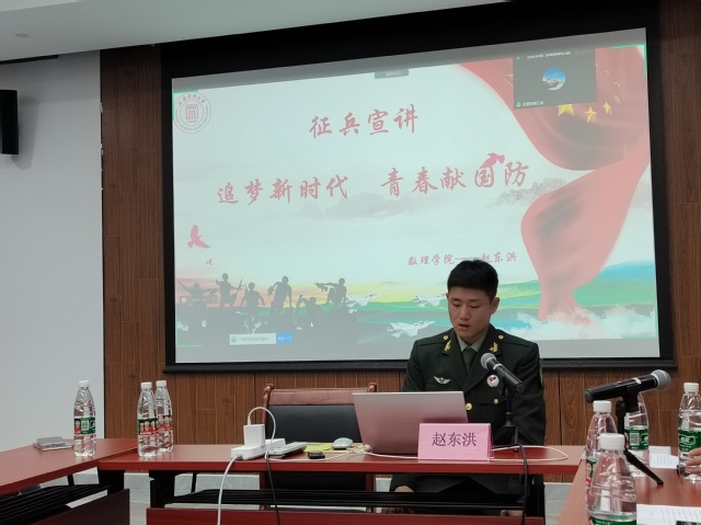 随后,薛正豪老师详细介绍了上海市及公司的征兵入伍的各项优待政策,包括征集时间、经济待遇、未来考研就业、个人荣誉等方面,让同学们对现在的入伍政策也有了更加深入的了解。在体检的要求方面,薛正豪老师也就一些常见问题进行了解释,提醒同学们平时要注意身体素质的锻炼,防止用眼过度、减少碳酸饮料的摄入等等。鼓励同学们坚定入伍信念,积极应征入伍。
