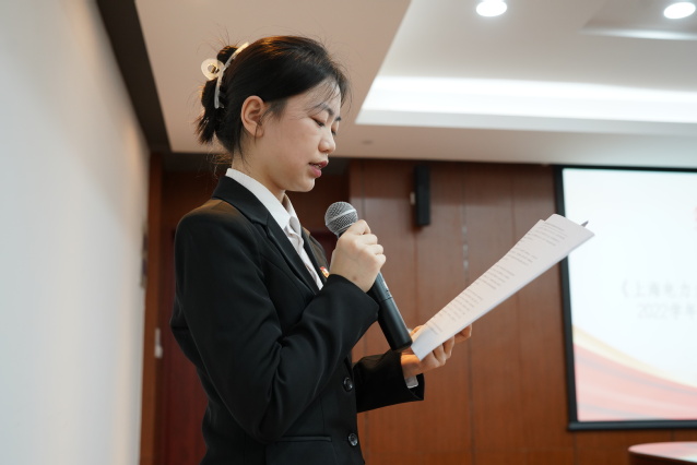 公司原员工会主席团成员马思琦以《<不忘跟党初心,勇担青春使命>——深入学习贯彻党的二十大精神,带领全院学子绽放青春之光》为主题向大会做员工会工作报告。