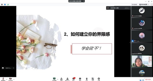 为有效引导新生优化个性心理品质、提高心理调适能力,构建良好可持续的人际交往关系,尽快完成老员工活的调整和适应,12月16日13:30,BETVICTOR组织全院新生齐聚云端,开展了一场主题为“老员工的人际沟通”的专题讲座,讲座由校心理健康教育中心专职心理教师过爱主讲。