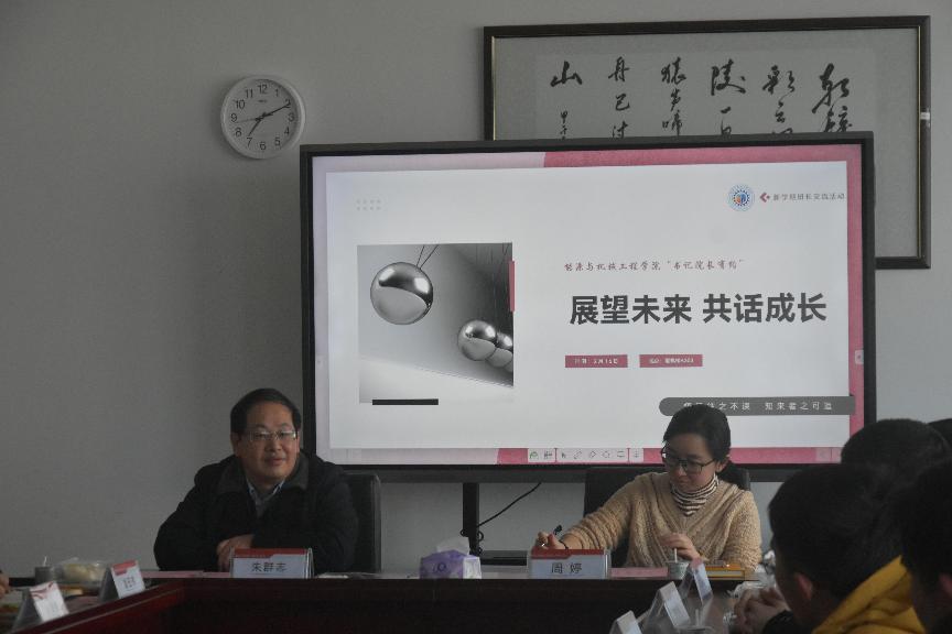 会上,班长们结合班级同学学习生活中遇到的问题,反馈了科创竞赛通道、智慧树等网课学习、课堂教学、实习就业资源、专业就业前景等方面遇到的困惑,并提出一些建设性的建议。朱群志和周婷认真聆听同学们遇到的困难和提出的建议,充分肯定这种积极反馈的良性沟通机制,同时对就业资源、实习实践、创新创业等多方面的问题进行了现场解答和反馈,部分需要协同解决的问题也将继续落实推进。