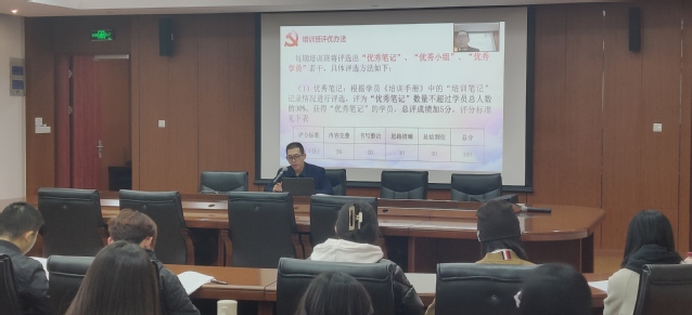首先,潘老师发表了开班致辞,明确了此次办班宗旨,并要求学员深刻学习领悟党的二十大精神,深入学习习近平新时代中国特色社会主义思想,进一步端正入党动机,确立为共产主义事业奋斗终身的信念,坚定“四个自信”、增强“四个意识”、做到“两个维护”王喆老师对培训安排、培训要求、培训班奖惩制度进行了讲解,明确了培训班的纪律要求。