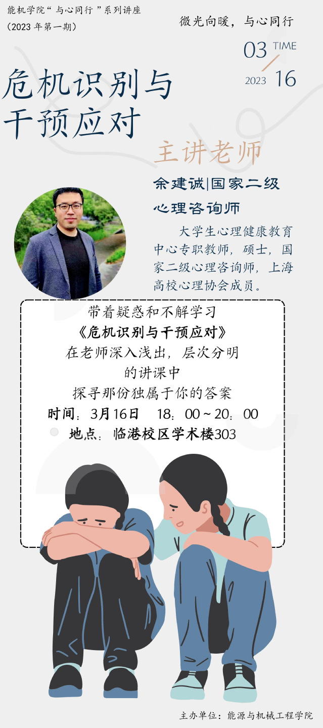 为进一步提高广老员工对心理危机的识别与应对能力,提升老员工心理健康水平,根据根据公司实际需求,公司计划于2023年3月16日18:00在临港校区学术楼303开展“学志堂”2023年第6期(总第37期)与心同行系列活动。本次活动的主题为“危机识别与干预应对”,邀请到了BETVICTOR心理健康教育中心专职教师余建诚开展讲座。讲座主要面向本公司大一至大三心理委员及公司心理协会全体成员。本次讲座旨在立足员工当前实际,从易出现心理危机的高危人群特征、心理危机症状和表现等方面讲解如何识别老员工心理危机及应对策略,助力员工心理健康水平全面提升。