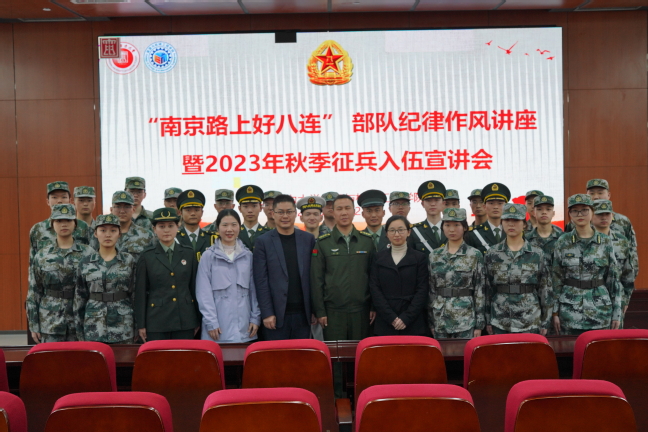 薛正豪从国家政策法规方面介绍了征兵入伍的重要意义,详细介绍了上海市及公司的征兵入伍的各项优待政策,包括征集时间、经济待遇、考研就业、个人发展等方面内容,让同学们全面了解入伍政策、不断坚定入伍信念,积极响应入伍号召。