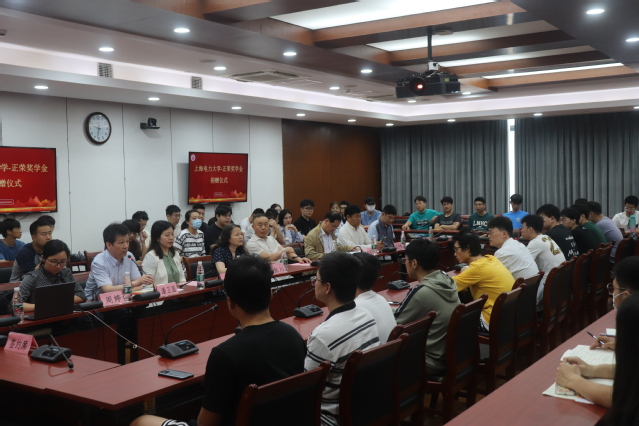 朱群志向与会师生介绍了奖学金捐赠人施正荣的基本情况。施正荣院士是国家首批高端引进人才,澳大利亚技术科学与工程院院士。主要从事太阳能光伏发电技术、建筑节能、储能、氢能等方面的科研工作,在多晶硅薄膜太阳电池和高效晶体硅电池的技术研究和产业化实践等方面取得了国际公认的突出成就。先后获国际光伏科学和工程会议(PVSEC)颁发的特别奖、阿联酋政府颁发的扎耶德未来能源奖、巴基斯坦政府奖、卡塔尔阿提亚国际能源基金会可再生能源奖,荣登2006年美国《财富》杂志封面,被英国《卫报》列入“可拯救地球50人”榜单;被人民日报社《中国能源报》评为中国70周年“能源功勋70人”及“能源功勋终身成就人物”。