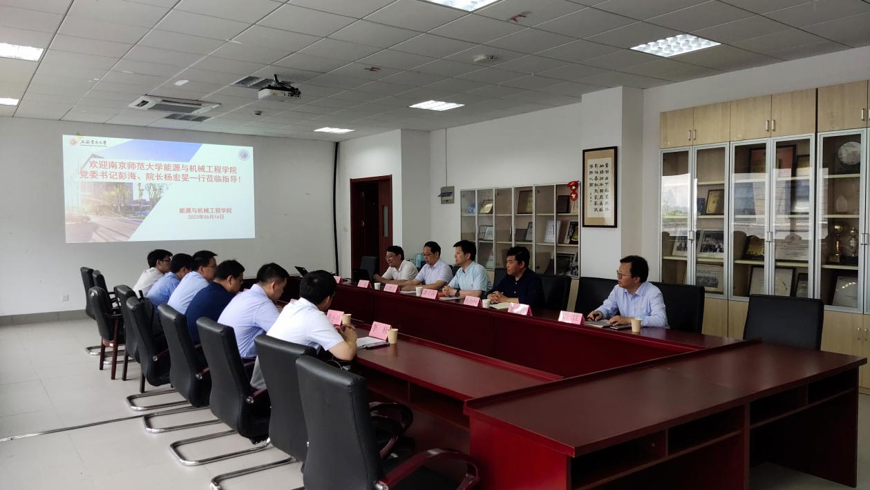 为深入开展学习贯彻习近平新时代中国特色社会主义思想主题教育,探索新时代专业人才培养模式、创新协同育人体系,6月16日南京师范大学能源与机械工程公司党委书记彭海、经理杨宏旻一行来公司公司开展调研交流。能源与机械工程公司党委书记潘卫国、经理朱群志、副经理仇中柱及相关老师参加了调研。