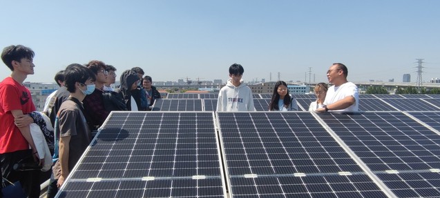 公司师生一行首先参观了公司的屋顶分布式光伏发电项目,在现场公司为同学们耐心讲解了光伏板的型号、特征、能效和寿命、光伏板获得最大光能的条件、换流器的工作原理等,同学们纷纷表示受益匪浅,不仅对在公司所学的专业知识在实际应用方面有了直观感受、开阔了眼界,也身临其境地感受了企业的工作氛围,加深了对企业的了解,促进了自己对职业生涯的规划思考。