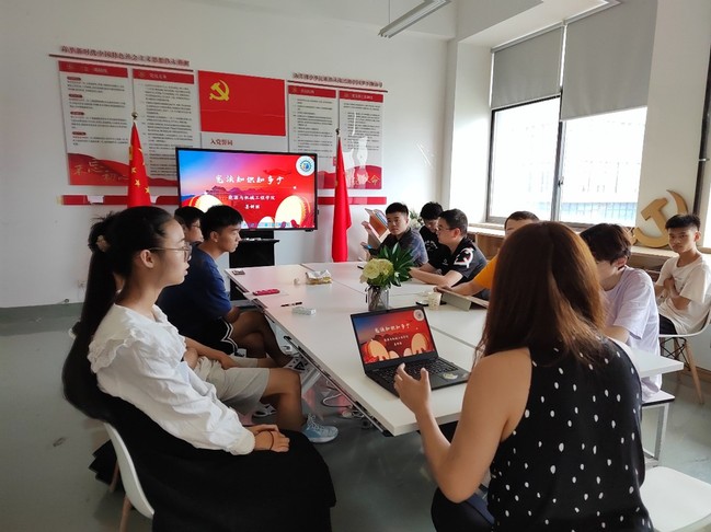 会上,姜妍丽以宪法的含义入手,为大家解释了宪法的意义和重要性。宪法是国家的根本法,写满了人民的权利和义务,是治国安邦的总章程,是党和人民意志的集中体现。作为治国之重器,宪法与国家前途、人民命运息息相关。随后,姜妍丽从中国第一部宪法开始,为大家讲述了中国宪法的发展历程。四十多年来,现行的宪法历经多次宪法修正案,始终与时俱进,是一部真正适合中国国情、适应时代要求、为中华民族伟大复兴保驾护航的宪法。此外,姜妍丽对现行宪法的每一个章节进行了详细的介绍,并对其中需要重点掌握的知识点和同学们展开了互动和交流,让在场的同学们对宪法有了更加直观和深入的了解。
