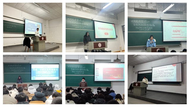 学志团作为公司的红色理论宣讲团,积极结合时事热点,深入班级及团支部进行红色精神及党史学习教育的分享。在本学期“以传统文化厚植家国情怀”的首日教育主题班会中,赵鸿宇、王子妍、方靖毅、陈永胜、孙倩等同学前往各个班级中,分别为大家宣讲了湘江战役、渡江战役、淮海战役、安徽省红色文旅资源等内容。不仅分享自己寒假实践期间的所感所悟,也让更多的同学们了解到先烈们英勇奋斗的故事,激励同学们踔厉奋发,奋勇向前!