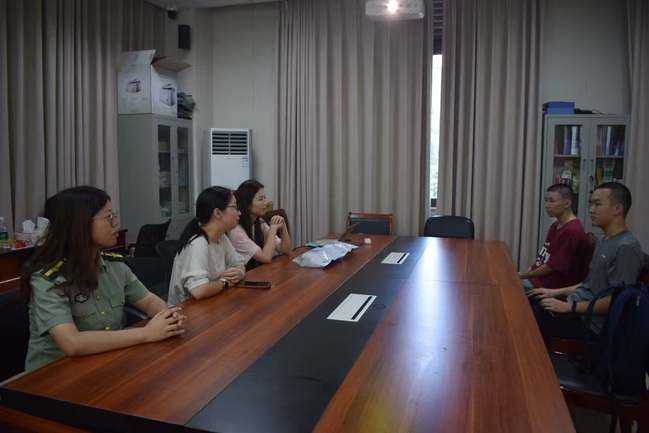 仝晶晶介绍了两名预定新兵的具体情况,并就在部队的生活和训练提出了一些基本的建议,希望大家努力成长为一名听党指挥、能打胜仗的“四有”优秀士兵。