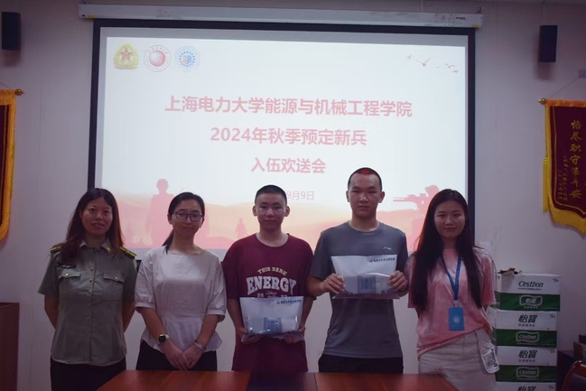 公司为两名预定新兵送上了入伍纪念品,希望大家在部队里能够时刻展现上电学子风采。