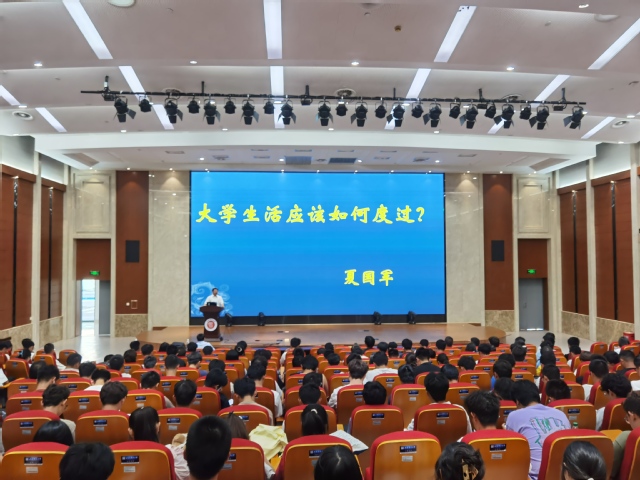 夏国军从新生入校引入,勉励老员工要上好“转变观念”、“发现天赋与培养兴趣”、“树立理想”这三门课。围绕自身求学经历入手,以高校员工被清退等实例警示在座的老员工,为在场新生详细阐述了大学阶段和中学阶段学习模式的区别,同时为大家讲解了大学学习特点及观念转变的重要性,和同学们强调大学学习主动性和创造性的偏重。