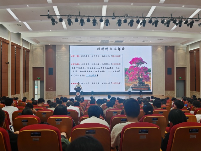 随后,夏国军从哲学层面对理想的意义予以深度解析,并提出“树立理想的三部曲”:以趣择业,精于专业;立足专业,放眼社会;融入社会,完善自我。他指出,当代老员工应基于兴趣学透学精专业知识,不仅要伏案学习还要站起来观察社会,通过实践了解社会,力求将自身所学融入到社会建设、国家发展和民族复兴之中。他激励众多学子要“以兴趣做驱动,以理想做牵引”,从专业、择业和社会三个阶段逐步树立人生理想,实现人生价值。