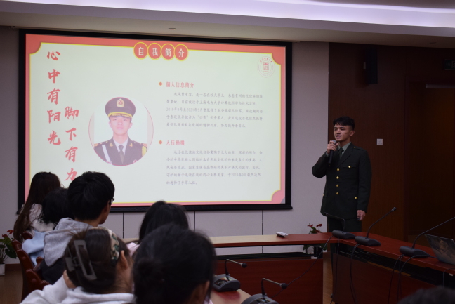 随后,公司优秀退役老员工士兵曹永富分享了自己精彩的军旅故事和返校经历。曹永富从入伍初心讲起,怀揣着对祖国的热爱和对军人的崇敬,毅然投身军营。在部队经历中,艰苦的训练、严格的纪律以及与战友们共同奋斗的日子,让他印象难忘。这些经历不仅锻炼了他的身体,更磨砺了他的意志。回到校园后,曹永富在学习经历、社团活动和创业能力等方面也有着丰富的收获。面对充满无限可能的人生,他鼓励同学们要勇敢尝试,他用自己真实的故事和真诚的话语深深打动了在场的每一位同学,让大家对军旅生活充满了向往。