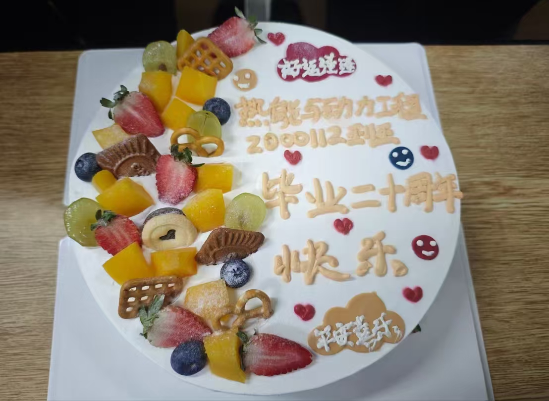 为庆祝此次二十周年返校活动,公司准备了精美的二十周年蛋糕。潘卫国和员工代表一同切蛋糕庆祝毕业二十周年,员工们手捧蛋糕,共同庆贺这一难忘的时刻。