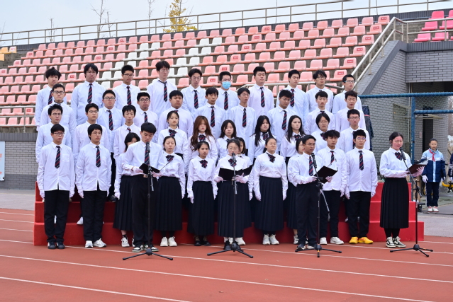 在国旗护卫队的庄严护卫下,鲜艳的五星红旗冉冉升起。警报声划破长空,全体师生庄严肃穆,低头默哀,向死难同胞致以沉痛的哀思与悼念。“民族觉醒,独立解放,改革振兴,国运日昌……”员工代表朗诵的《南京大屠杀死难者国家公祭日和平宣言》字字铿锵,声声振聋发聩,直击心灵深处,唤起人们对和平的珍视与捍卫。“让我们的笑容,充满着青春的骄傲,让我们期待明天会更好……”《明天会更好》的悠扬歌声中,饱含着青年员工对和平生活的热切向往与对未来的美好期许。现场激昂澎湃的朗诵《少年中国说》,更是气势如虹,彰显着新时代青年的蓬勃朝气与担当精神,“少年智则国智,少年富则国富;少年强则国强……”声声誓言,在校园上空回荡,振奋着每一个人的心灵。